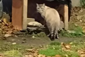 Chat gris Blanc yeux bleus trouvé depuis 24h le 2 NOVEMBRE 2025 sur un site de nourrissage prés d'une déchetterie à Bonneuil, l semble sociable, miaule mais apeuré de s'être perdu .